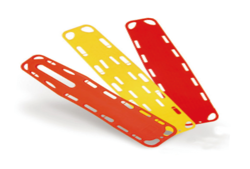 ● 板式担架又称脊柱板,主要用于固定人体的脊柱。采用PE材料生产而成,无释放污染的PE材料成型,无毒、无味,能浮于水面,坚固耐用,可进行X光透视。担架可与头部固定器结合使用。有3种颜色供选择:红色、黄色、橙色。